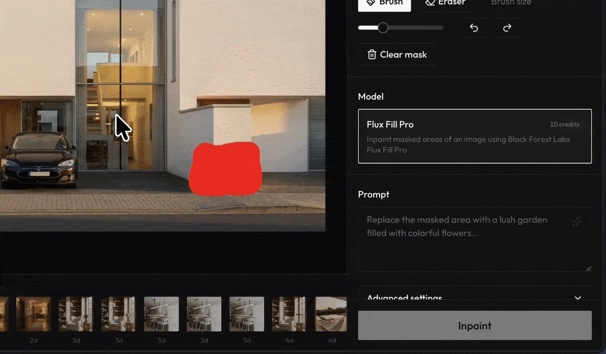 Visiomake includes inpainting as part of its image generation toolkit. The workflow: